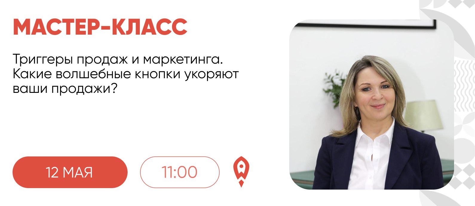 12 мая, в понедельник, состоится мастер-класс «Триггеры продаж и маркетинга. Какие волшебные кнопки укоряют ваши продажи?»
