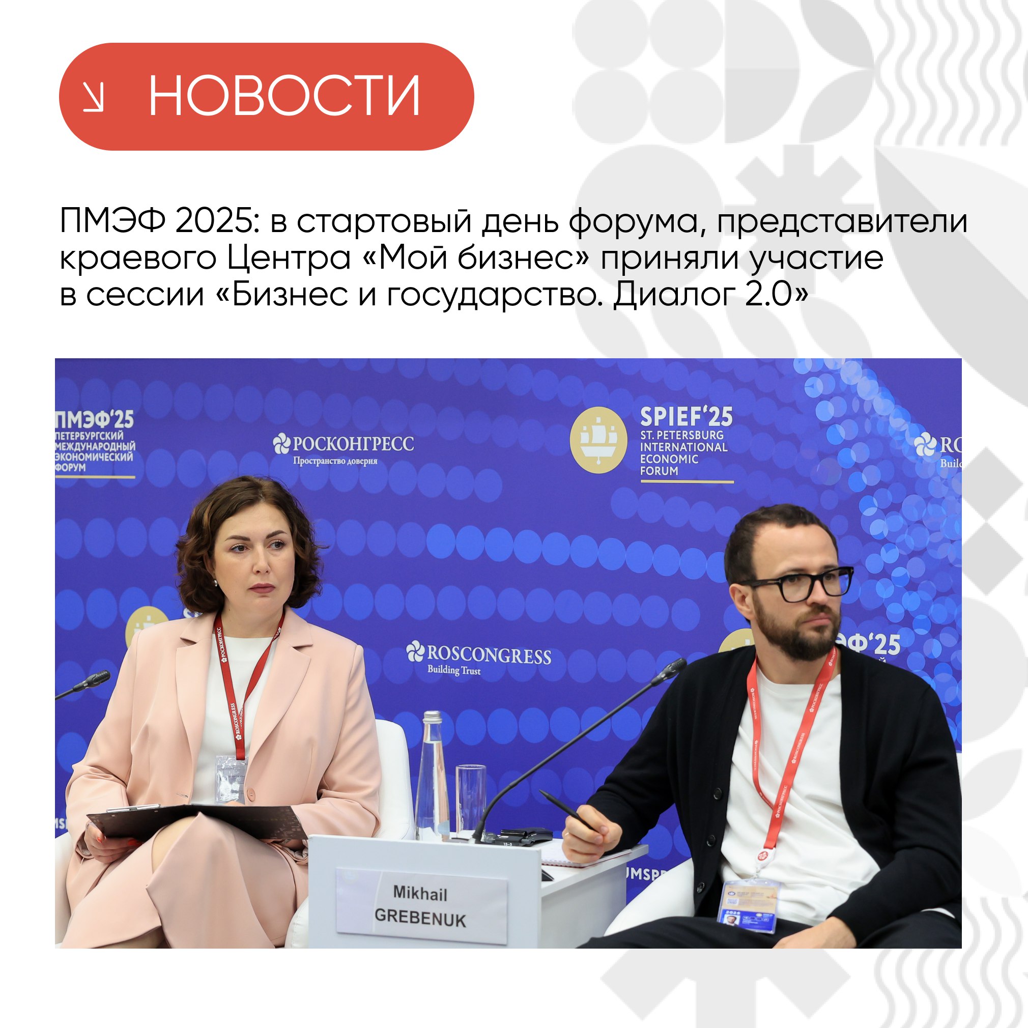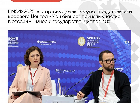 В стартовый день форума представители краевого Центра «Мой бизнес» приняли участие в сессии «Бизнес и государство. Диалог 2.0» в рамках форума «Малое и среднее предпринимательство».