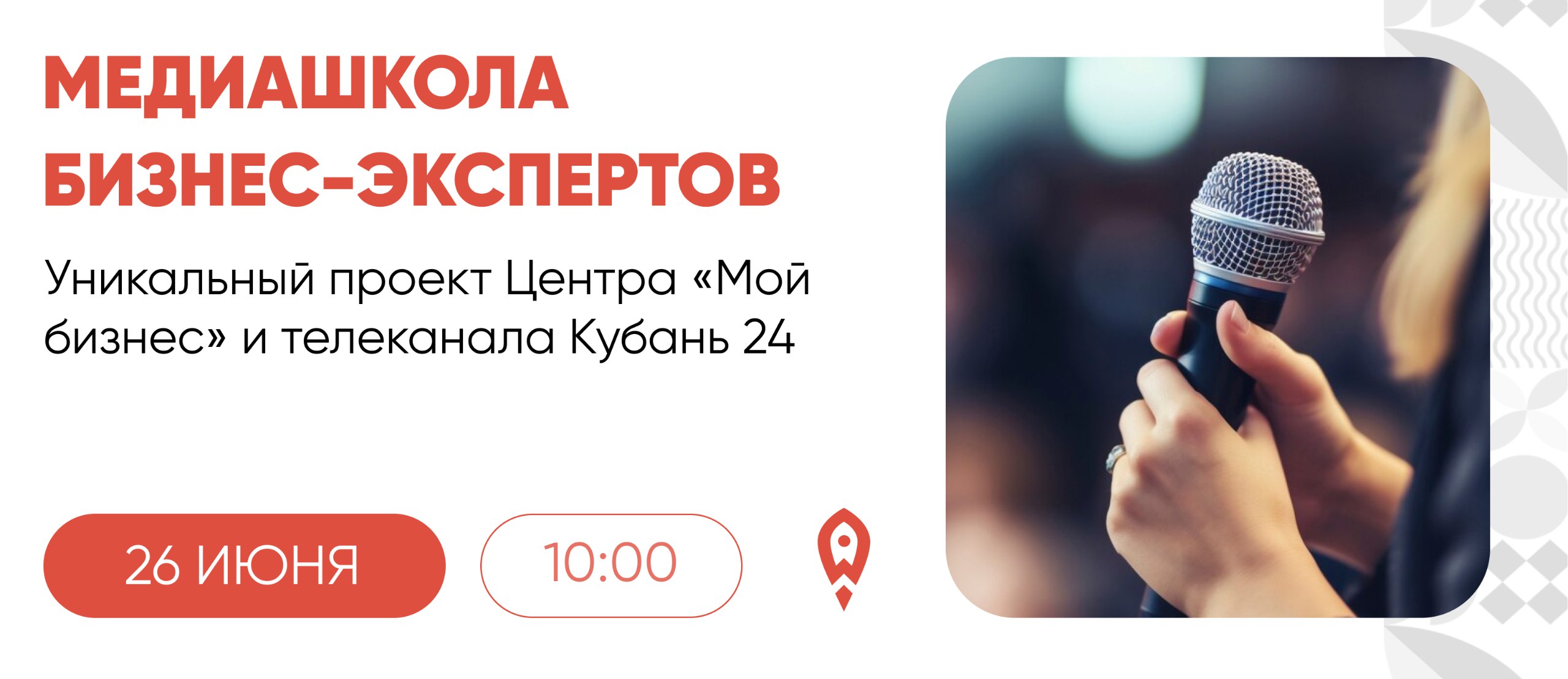 Это уникальный проект Центра «Мой бизнес» и телеканала «Кубань 24». Мероприятия проходят в виде очных мастер-классов и в формате моделирования ситуации.
