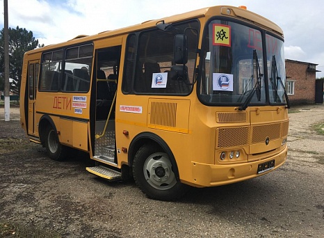 Автобус ПАЗ на 31 посадочное место приобретен на средства краевого и муниципального бюджетов по региональной программе «Развитие образования» в рамках национального проекта «Безопасные качественные дороги».