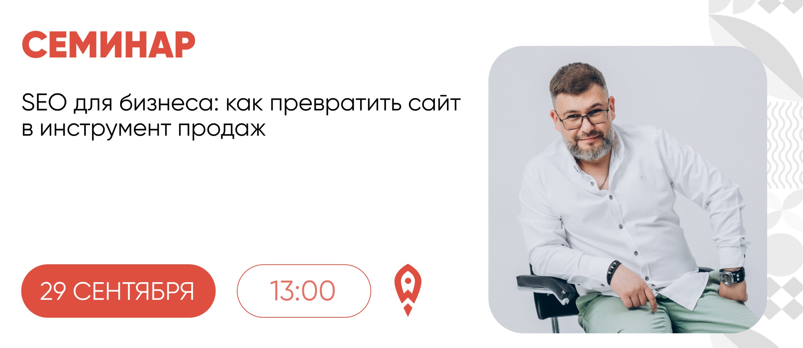 29 сентября, в понедельник, пройдёт семинар «SEO для бизнеса: как превратить сайт в инструмент продаж»