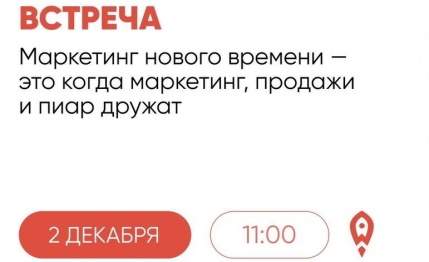 2 декабря, во вторник, пройдёт встреча «Маркетинг нового времени — это когда маркетинг, продажи и пиар дружат»