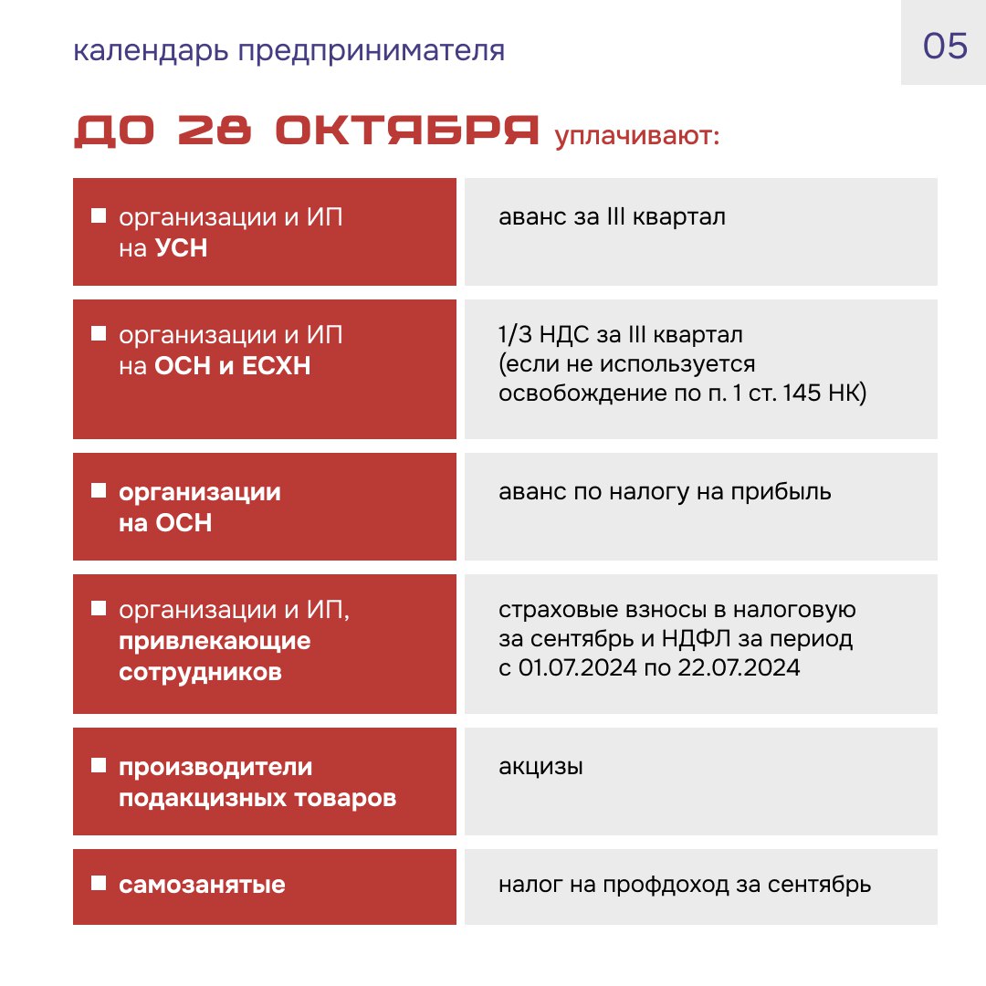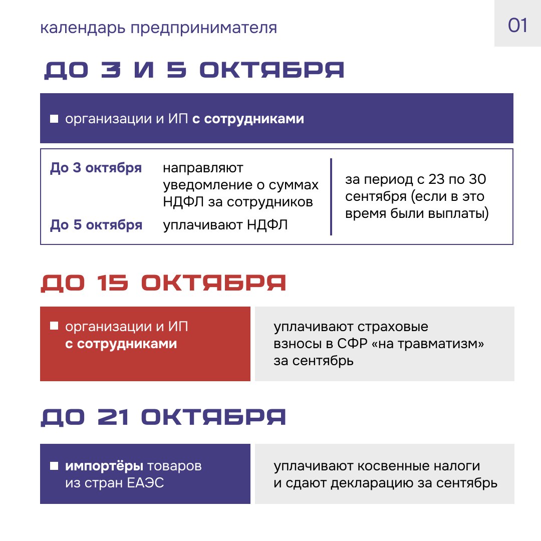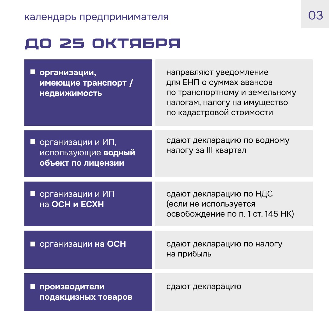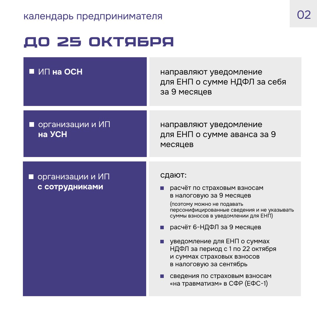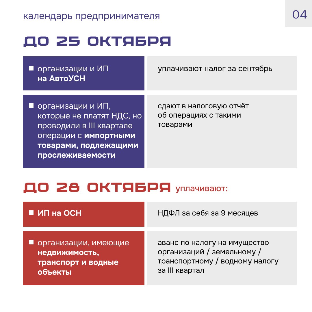 Новый Календарь предпринимателя уже здесь, ведь в октябре у многих добавляются квартальные платежи и отчёты!