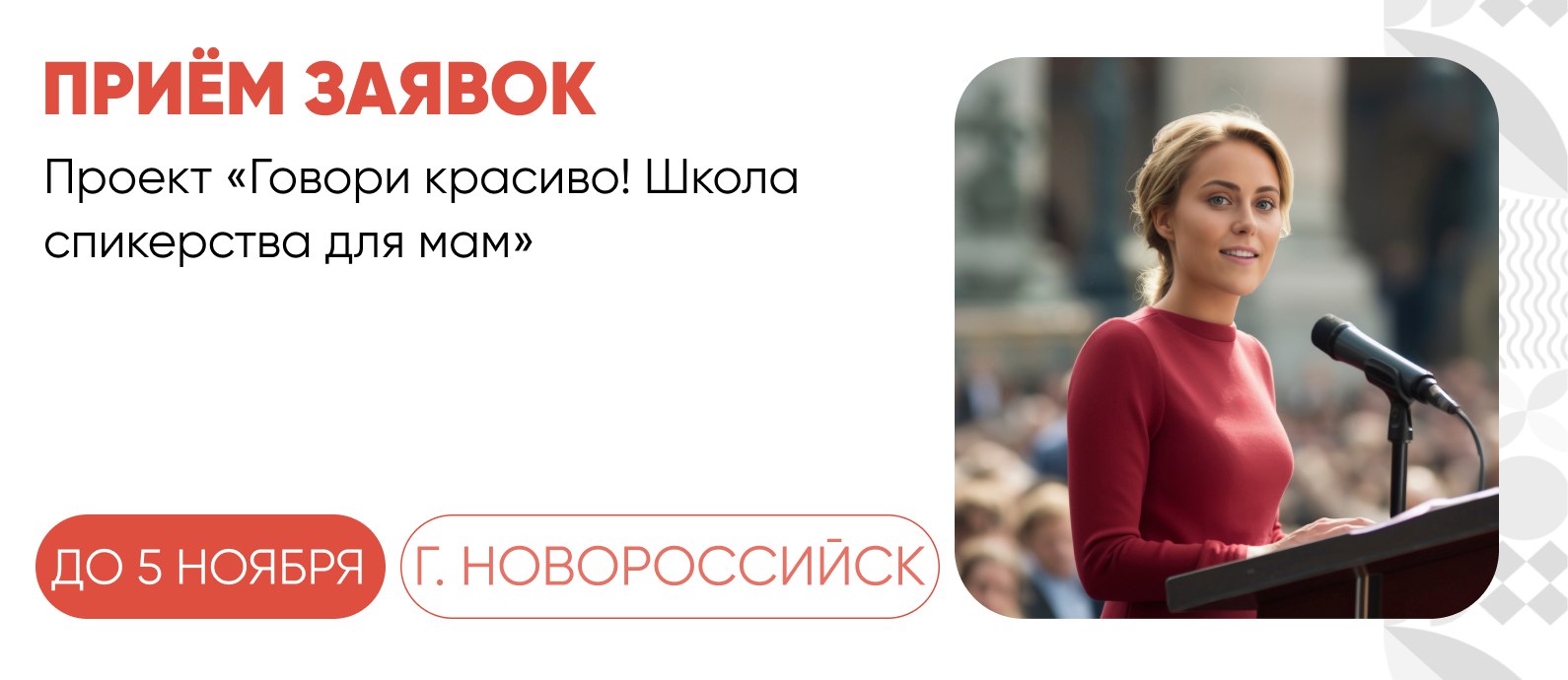 Участие в проекте бесплатное. Узнать подробнее и подать заявку можно до 5 ноября по ссылке (https://sozidanie23.ru/2024-mama-spiker)