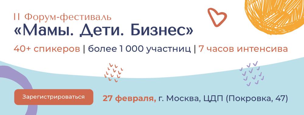 📆27 февраля в Цифровом деловом пространстве в г. Москве пройдёт II ежегодный Форум-фестиваль «Мамы. Дети. Бизнес» — крупнейшее деловое событие для женщин, совмещающих материнство и предпринимательство.