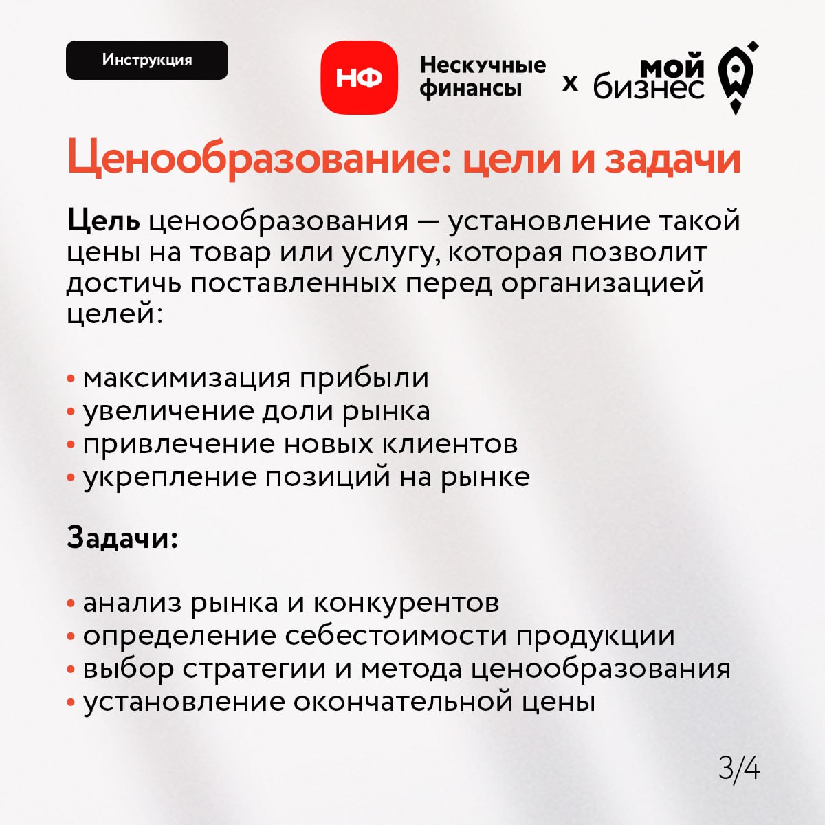 Совместно с экспертами Нескучных финансов (https://t.me/noboring_finance) подготовили руководство по ценообразованию для бизнеса. Главные тезисы можно найти в карточках, а подробнее рассказывали на вебинаре — запись можно посмотреть по ссылке (https://vk.cc/czvMLL).