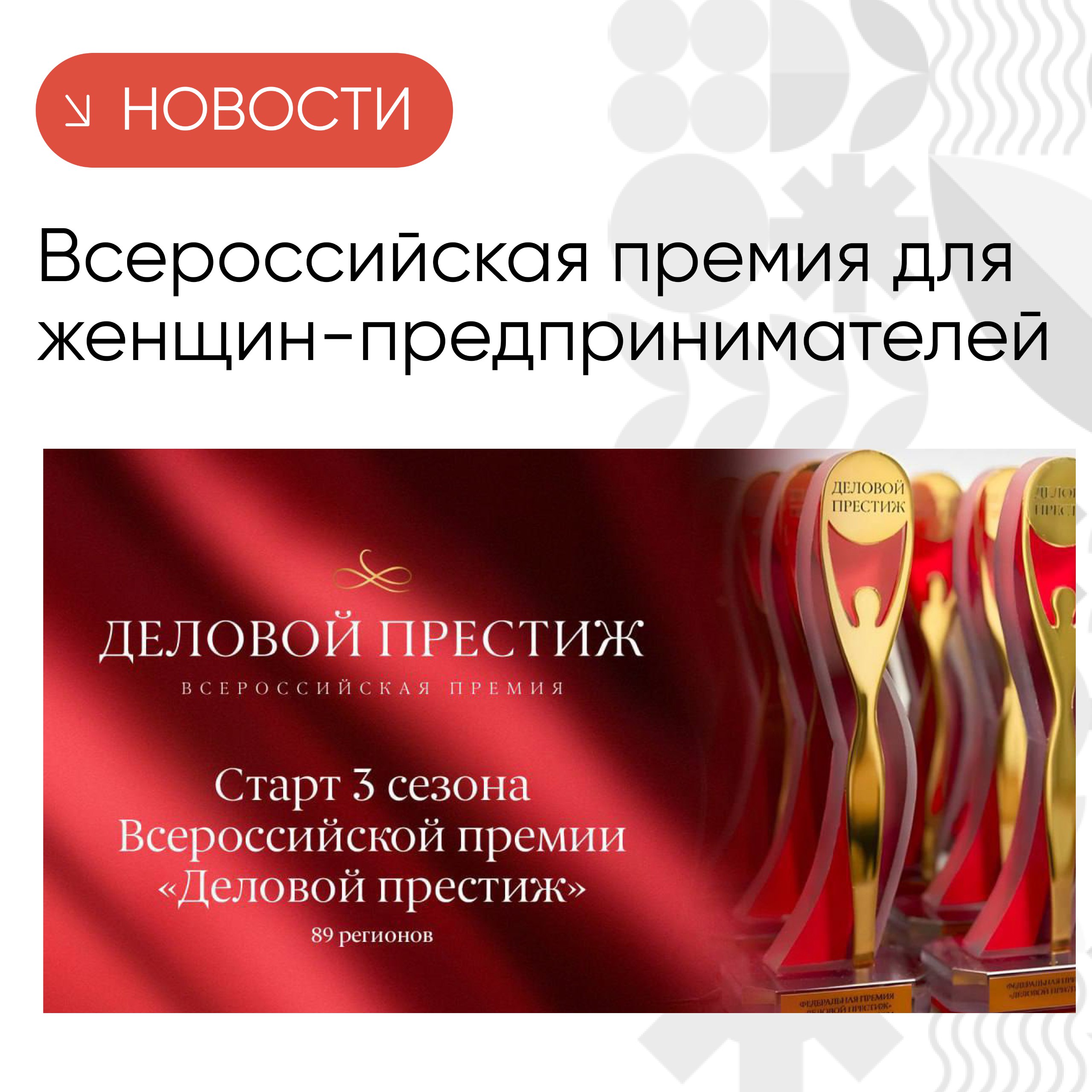 Финал премии «Деловой престиж» состоится в апреле 2025 года в Москве. Для участия приглашаются женщины – собственники, основатели и руководители компаний всех масштабов бизнеса: от малого до крупного.