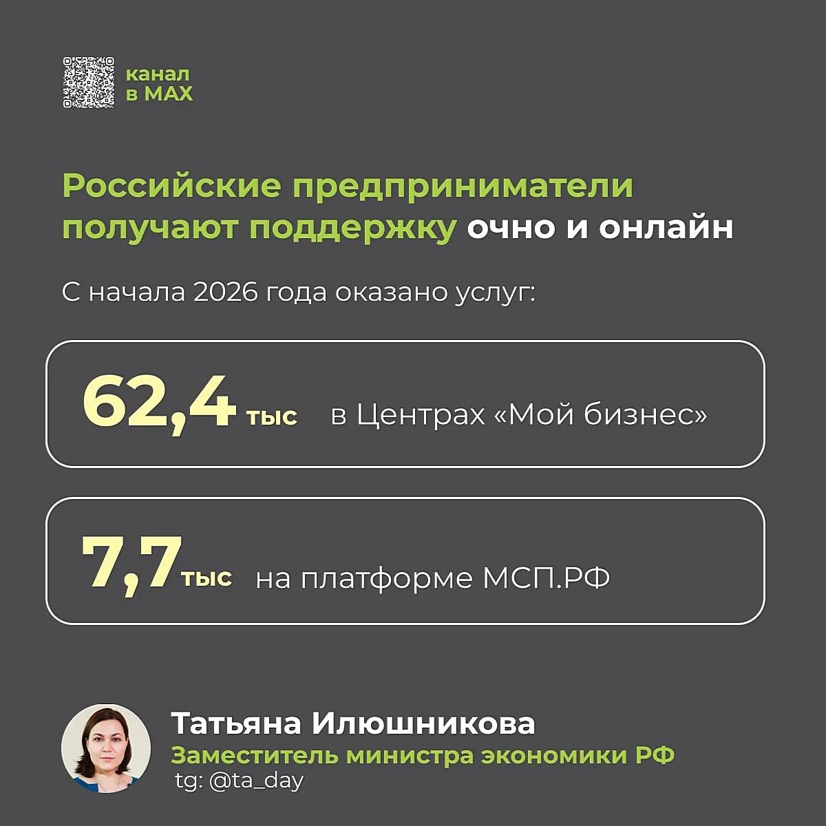 62,4 тыс. в Центрах «Мой бизнес» (всего работает 410 центров)
