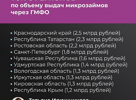 ГМФО выдают микрозаймы на льготных условиях. Кредиты предоставляются сроком до 3 лет на сумму до 5 млн рублей. Займы можно получить в 140 государственных микрофинансовых организациях в 88 регионах страны. Через микрофинансовые организации за прошлый год бизнес получил 26 тысяч микрозаймов на сумму более 56 млрд рублей.