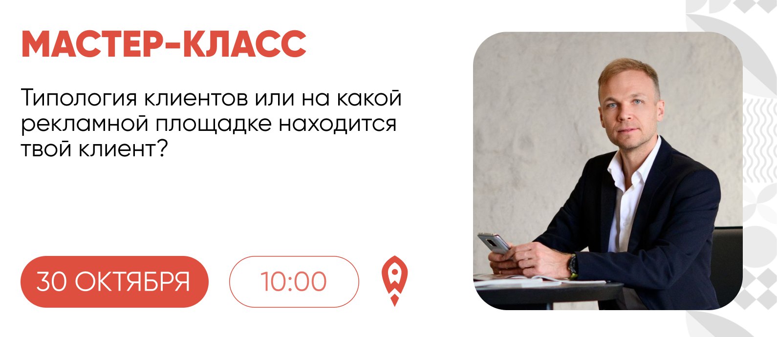 В среду, 30 октября, состоится мастер-класс на тему: «Типология клиентов или на какой рекламной площадке находится твой клиент»