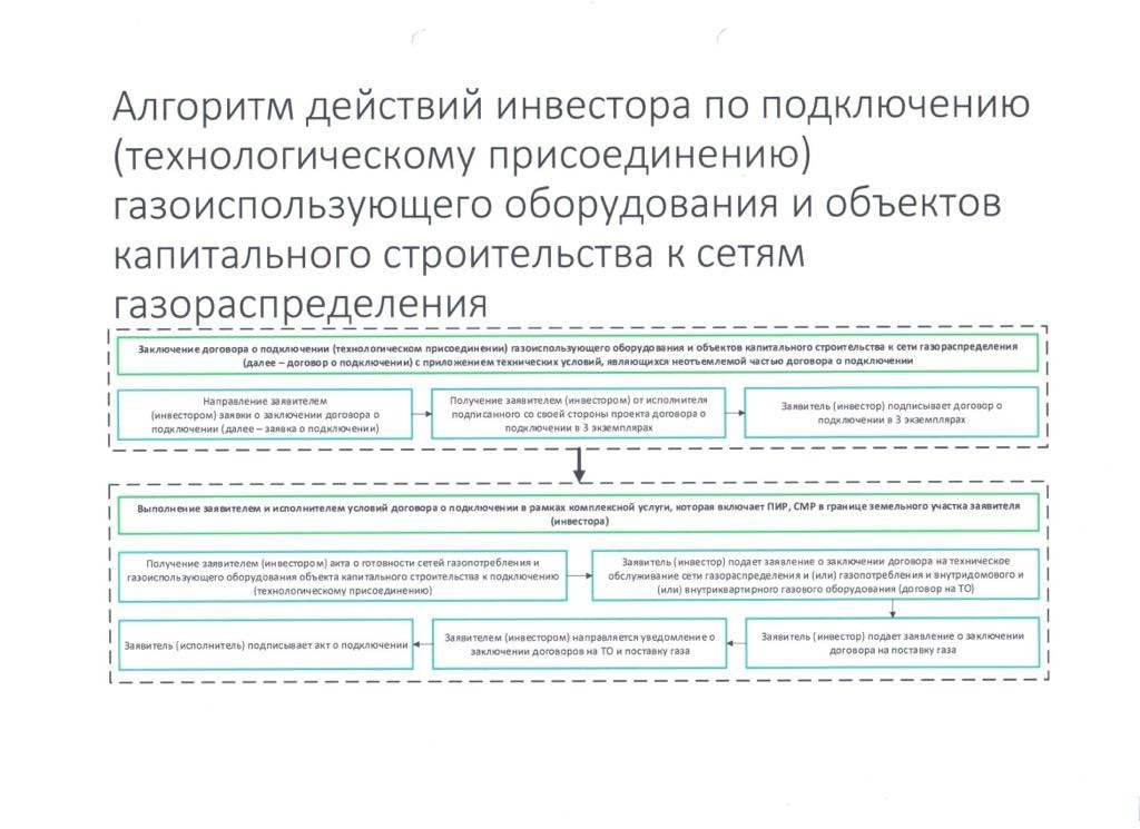 Подраздел 1. Алгоритм действий инвестора по подключению (технологическому присоединению) газоиспользующего оборудования и объектов капитального строительства к сетям газораспределения